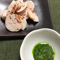 鶏ハムのパセリソース 紅花添え