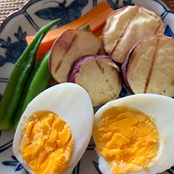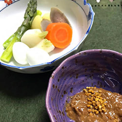 蒸し野菜の梅みそだれ 蜂花粉添え