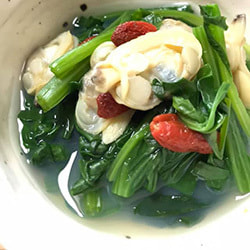 ほうれん草とアサリ、枸杞の実の煮浸しは、造血作用、疲労回復に。