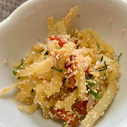 青じそと大根の辛子明太子炒め クコの実入り