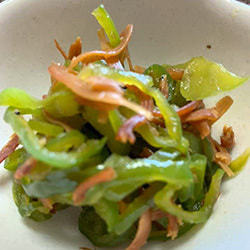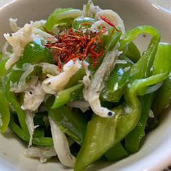 ピーマンとじゃこの和え物 紅花添え